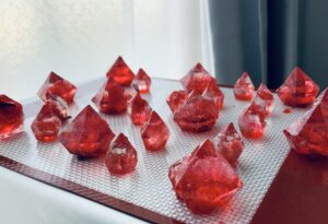 マスカット味の琥珀糖を作ることができました!!緑のグラデーションをつけてみたのですが、作りながらだと難しい😿 ダイヤモンドの形はうまくできたので、もっともっといいものを作っていきたいです!