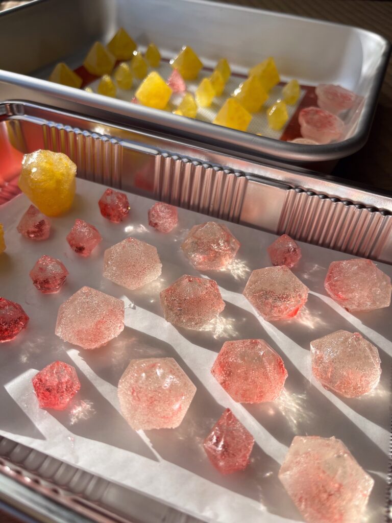 前回作った夏場と違って室温が低いので苦戦していますが、キラキラしたきれいな琥珀糖を作れるように頑張ります✨